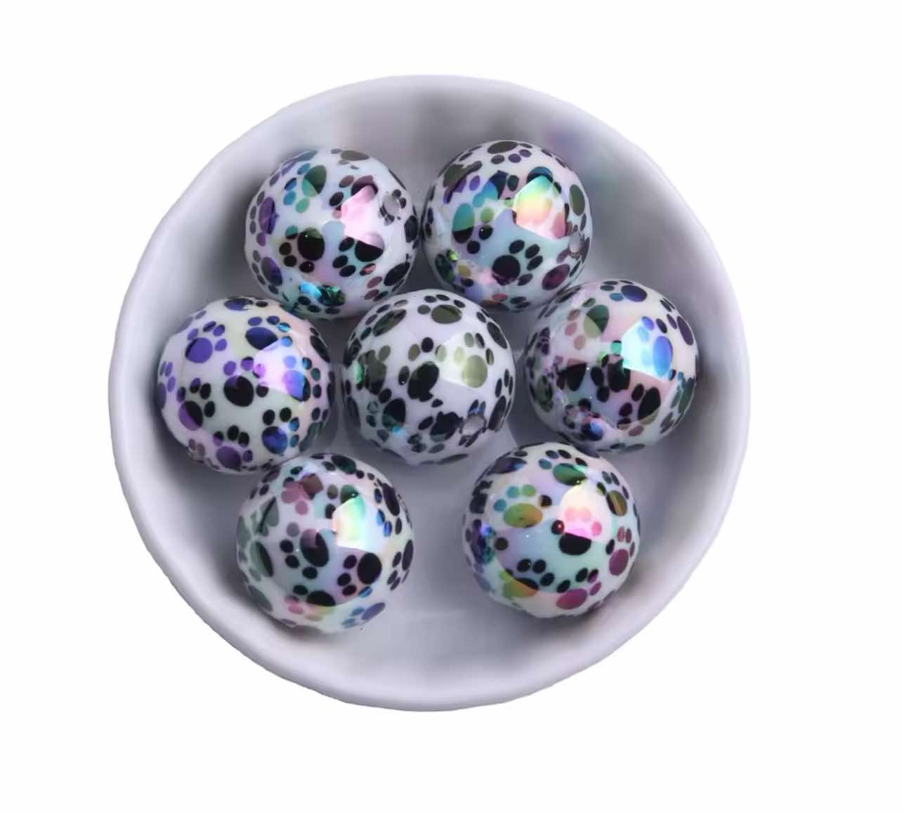 Paw Print UV AB Chunky Acrylic 20mm Bead