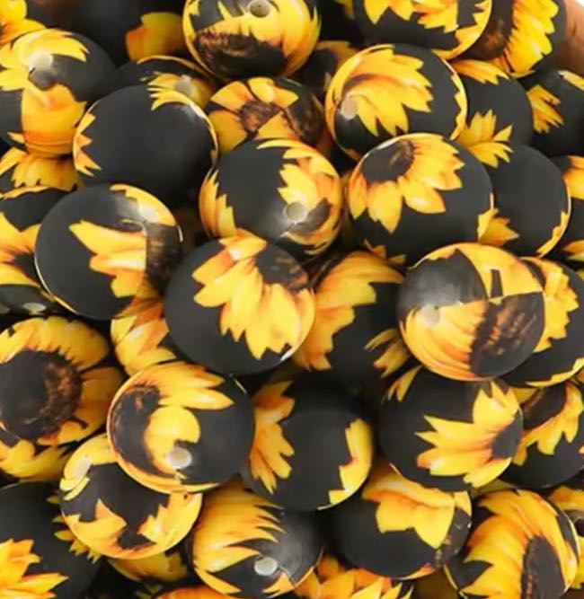 Field of Sunflowers Printed 15mm Silicone Bead