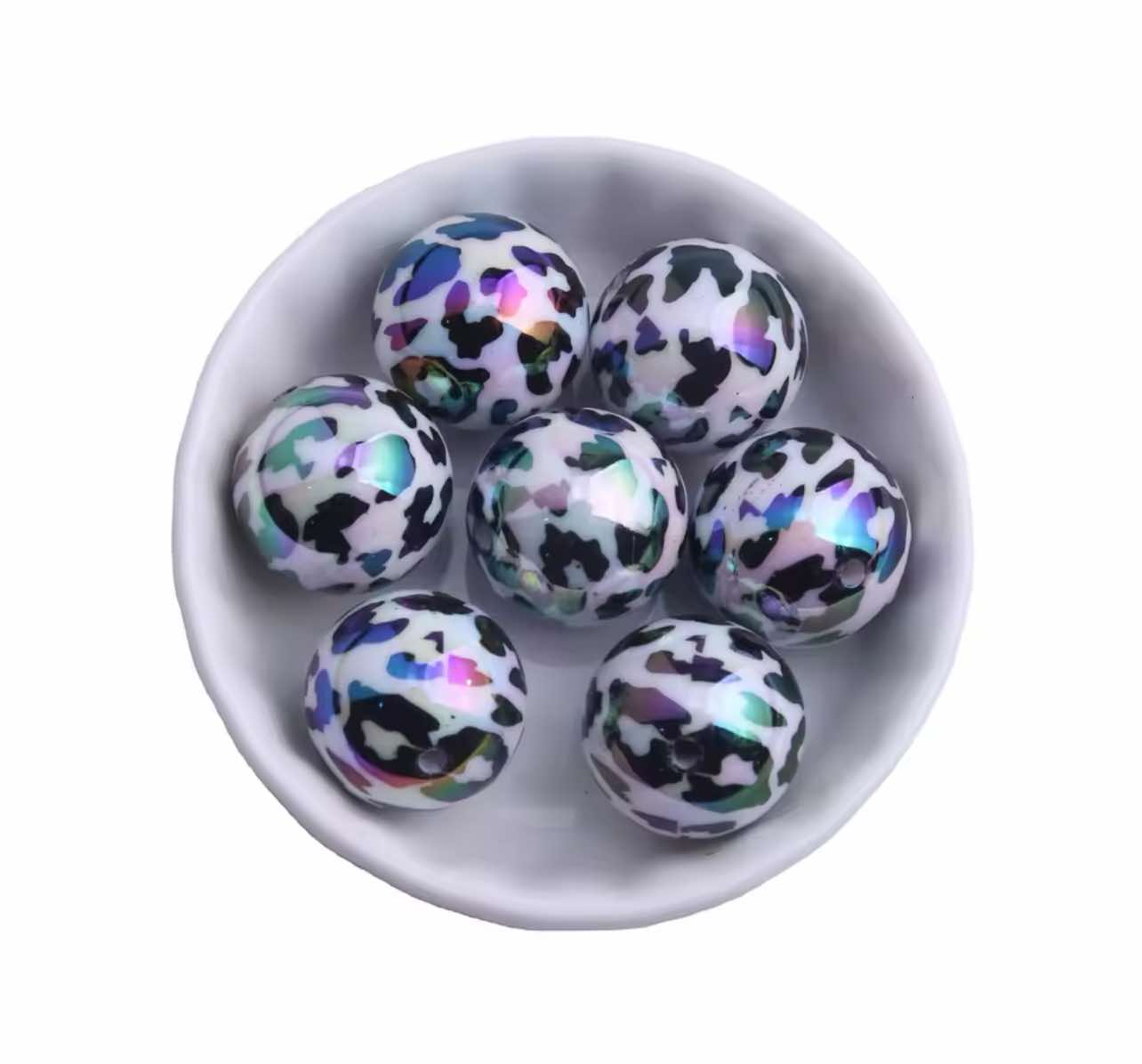 White Cheetah Print UV AB Chunky Acrylic 20mm Bead
