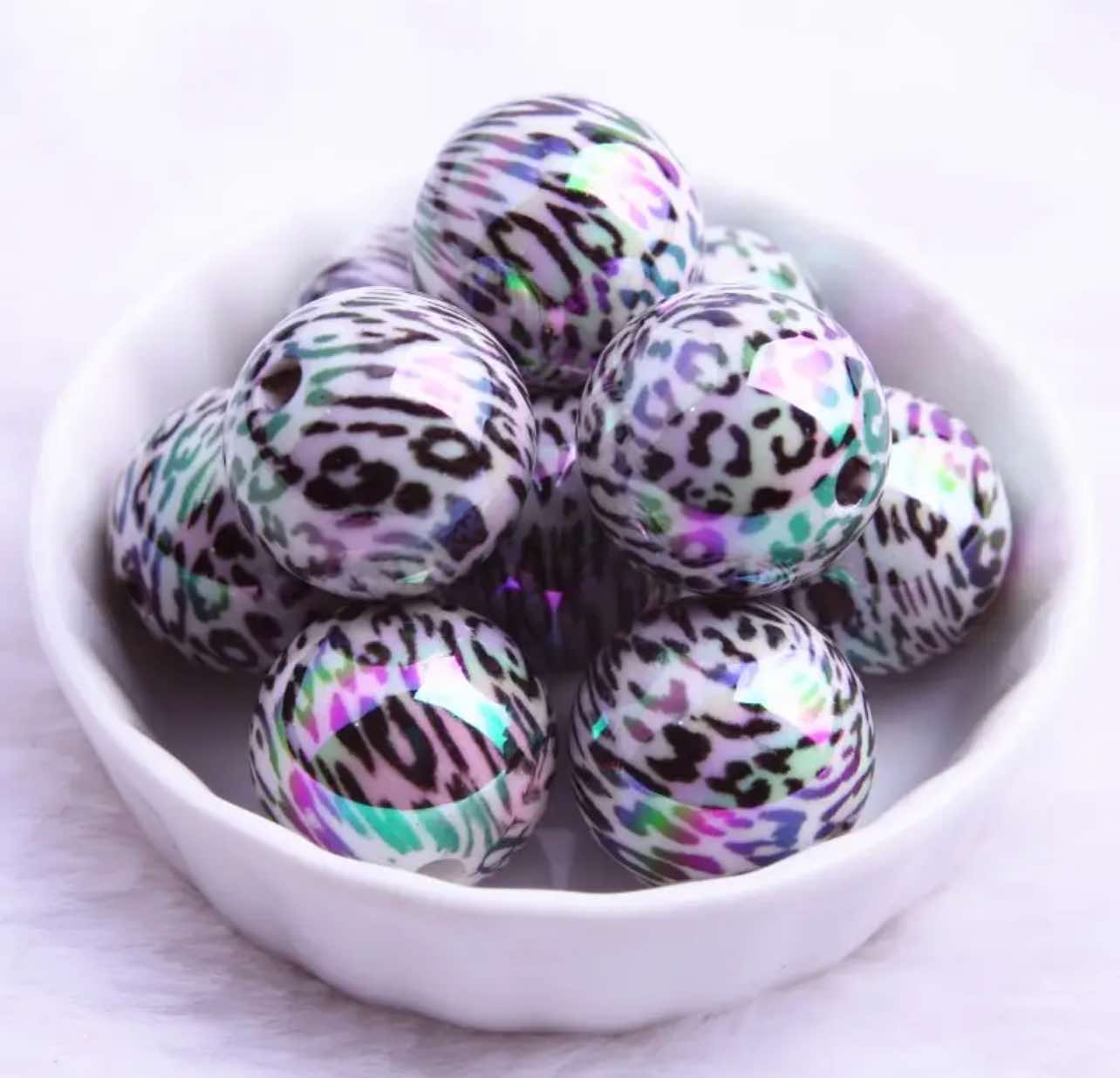 White Leopard Print UV AB Chunky Acrylic 20mm Bead